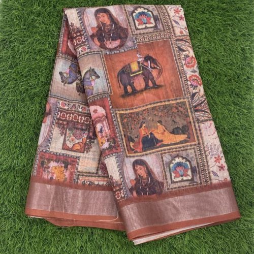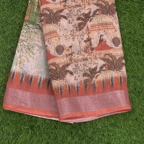 Multicolor Digital Print Cotton Linen Saree